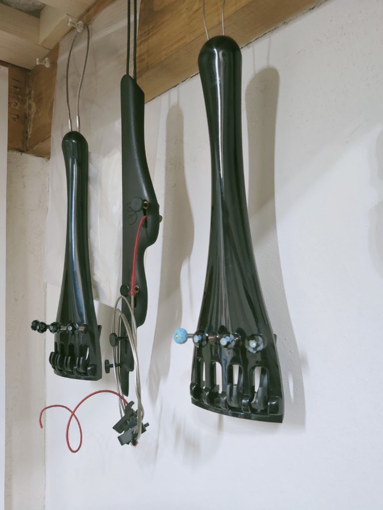 チェロのアジャスター付きテールピースには、ウイットナー、アキュースティック、ボワ・ダルモニ、ボガロ・クレメンテ、などいろいろな種類のものがあります。